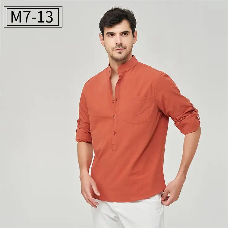 Henry Men's Casual Style Formal Wear Shirts Long-Sleeved 100% Cotton Twill Anti-Wrinkle Single Breasted for Spring Summer